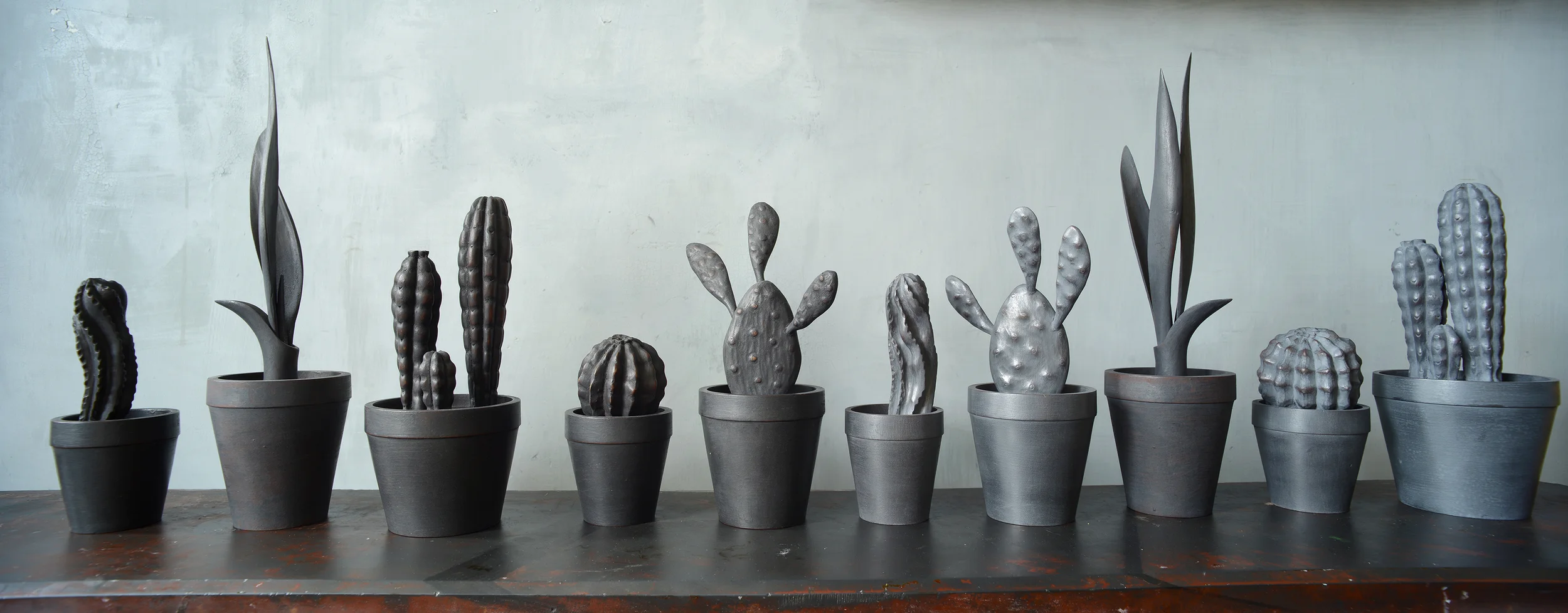 EACH HAND CARVED WOOD CACTUS BOX IS PAINTED WITH GRAPHITE AND PIGMENTED CASEIN PAINT.