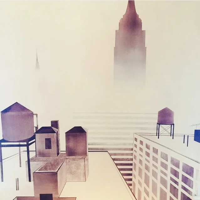 METROPOLIS Farrow + Ball en grisaille of a foggy Metropolis scene. NYC