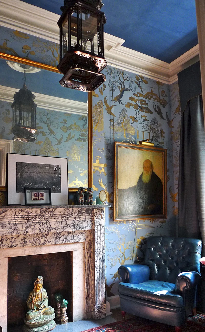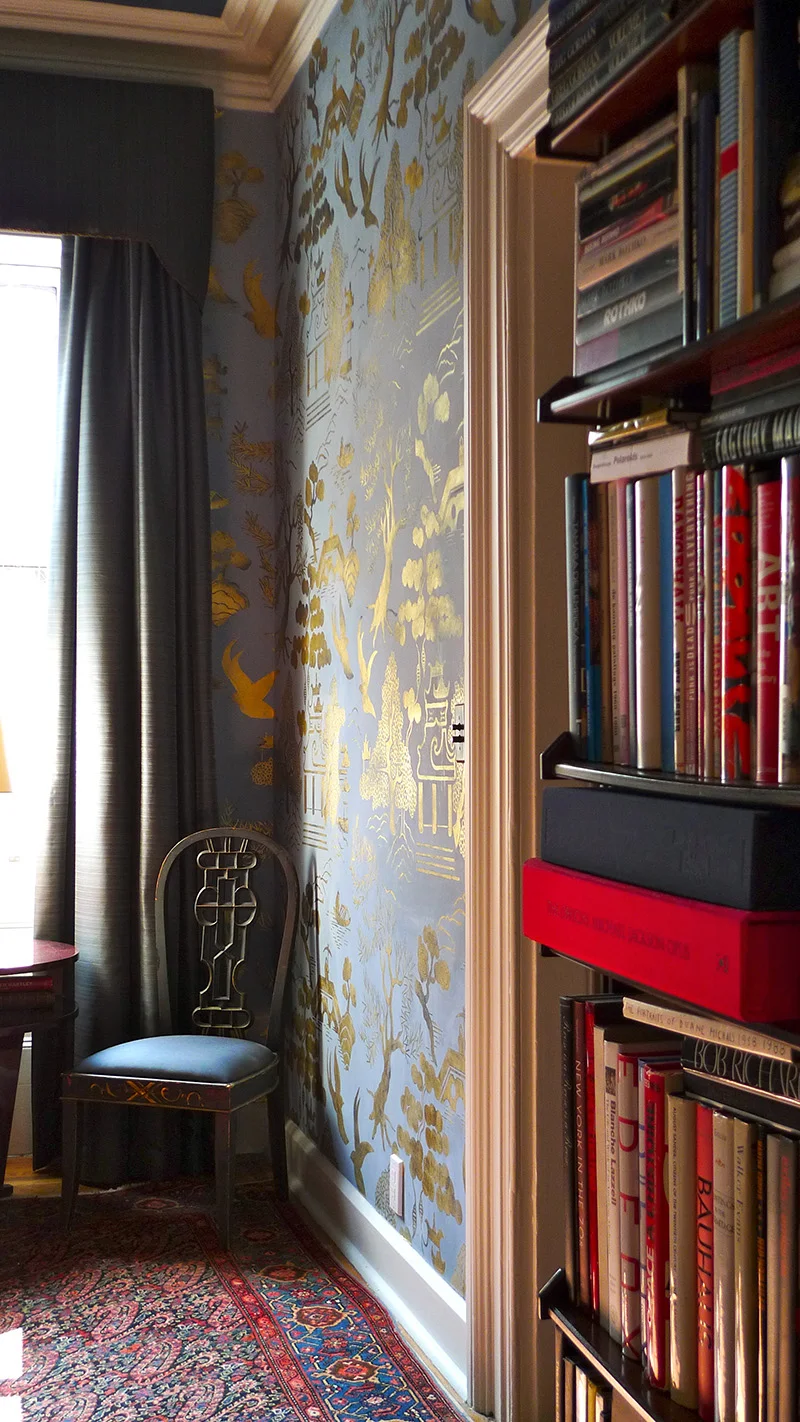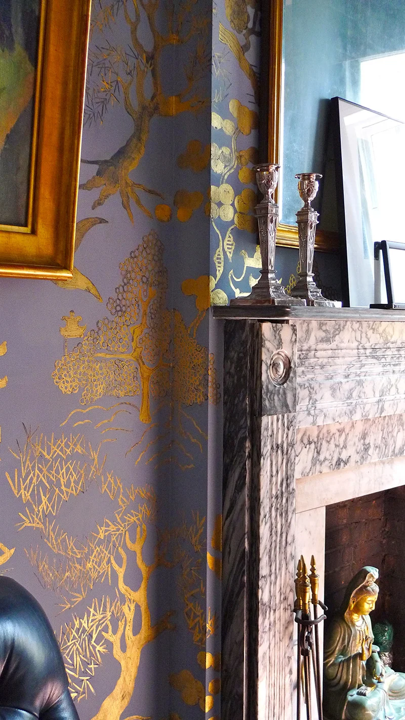 Hand painted casein and 22kt gold leaf in chinoiserie pattern. NYC